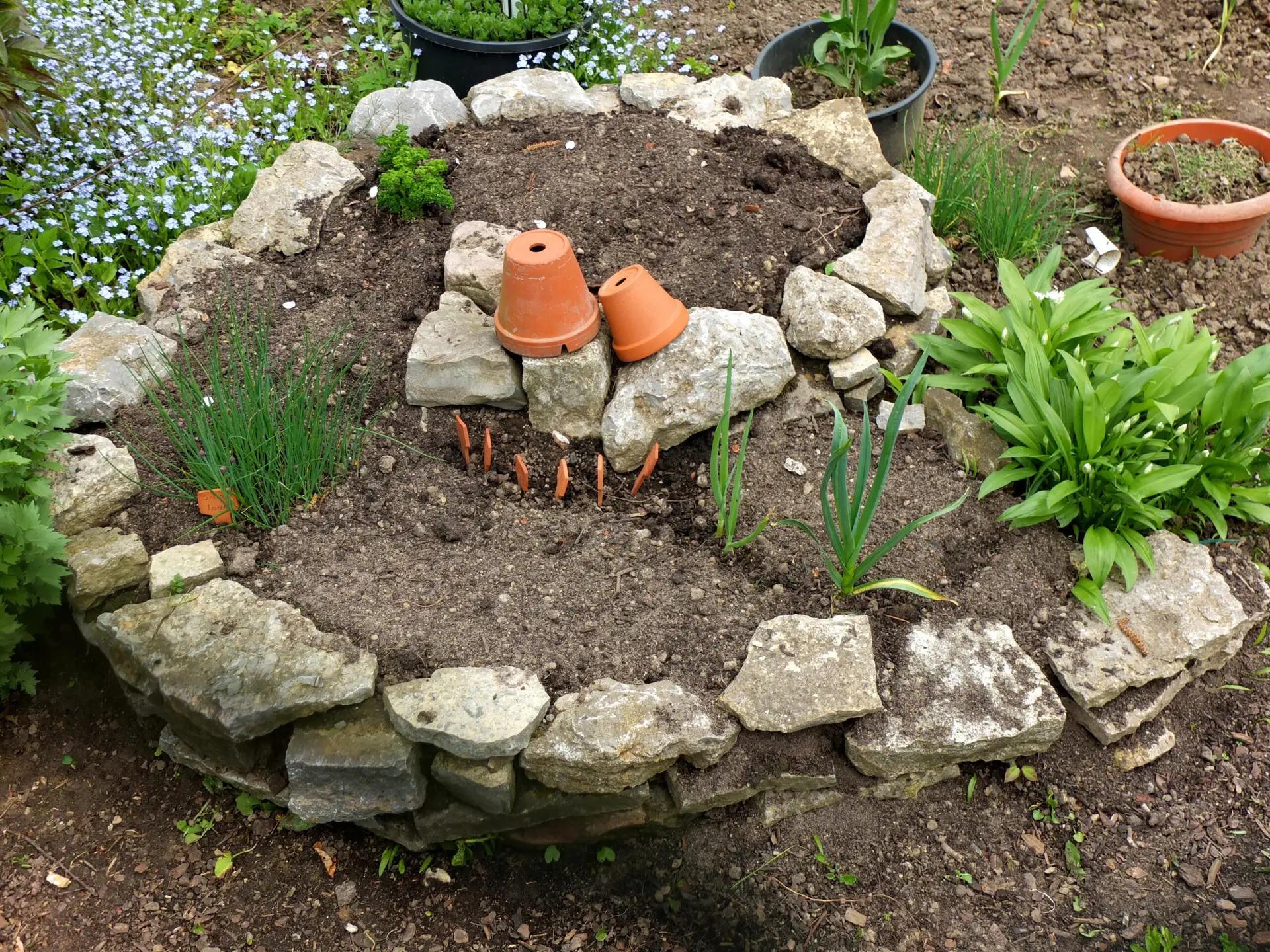 - Natursteine oder Ziegel für die Spiralmauer